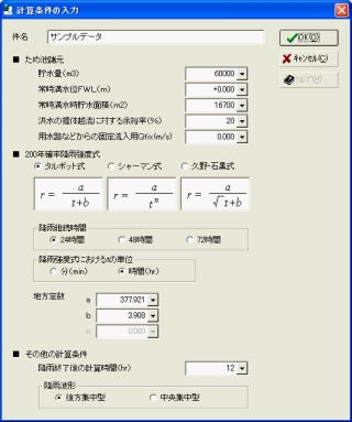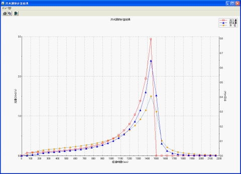 (社)農業土木学会,土地改良事業設計指針「ため池整備」(平成12年2月)に準拠し, ため池の貯留効果を考慮した放流量のシュミレーションを行い,設計洪水位の算定 を行います。確率降雨強度式は指針に準拠し,タルボット式,シャーマン式, 久野・石黒式から選択できます。しおり付きPDF文書エクスポート機能。