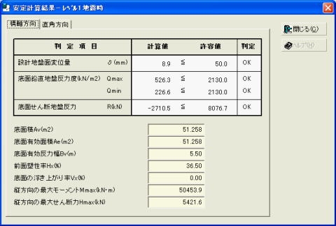 ●『安定計算』で直角方向のみの検討を行った場合,結果一覧表が出力されない不具合を修正●『レベル2地震時照査』安定計算の部材反力算出計算において,地盤反力分布が照査断面より前面にのみ分布する場合,地盤の反力の算出の不具合を修正